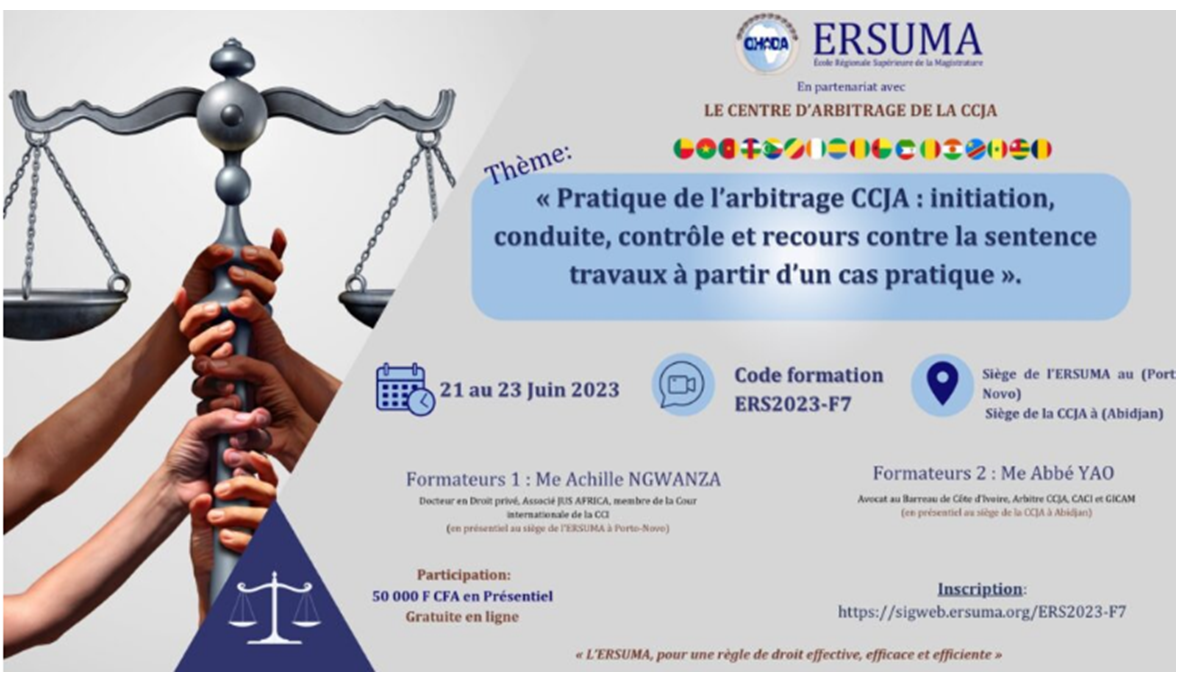 COMMUNIQUÉ ERSUMA – Formation sur la Pratique de l’arbitrage CCJA