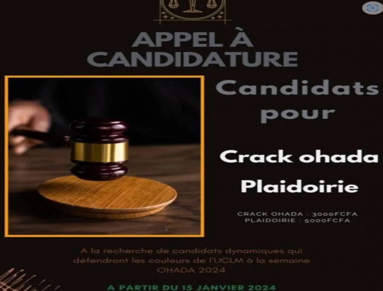Cet appel à candidature permettra la présélection, la formation et la sélection des étudiants suffisamment aptes à défendre les couleurs de leur université aux compétitions de la 5e Édition de la Semaine OHADA qui se tiendra du 18 au 23 mars prochain à Abidjan.