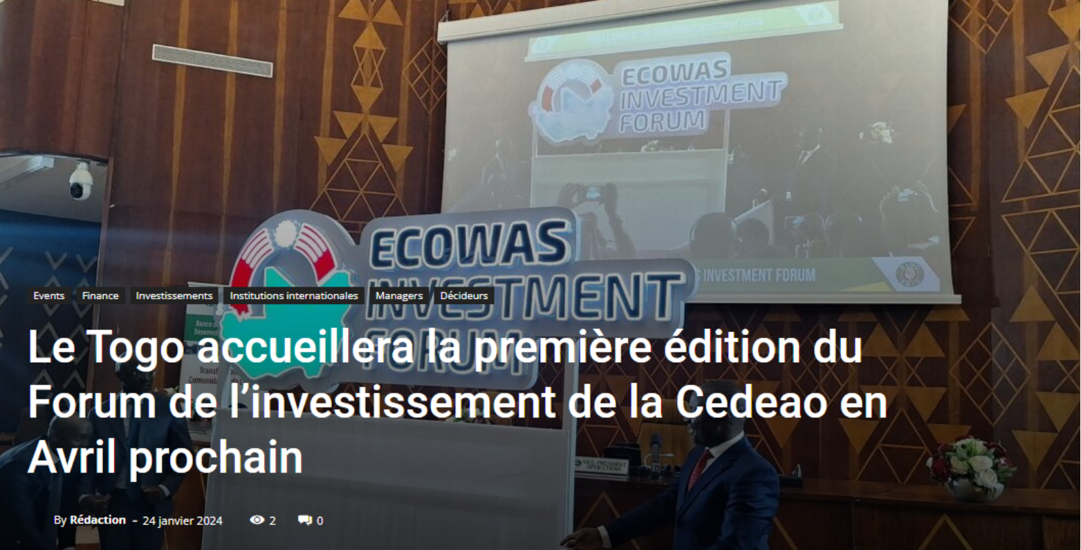 Le Togo accueillera la première édition du Forum de l’investissement de la Cedeao en Avril prochain